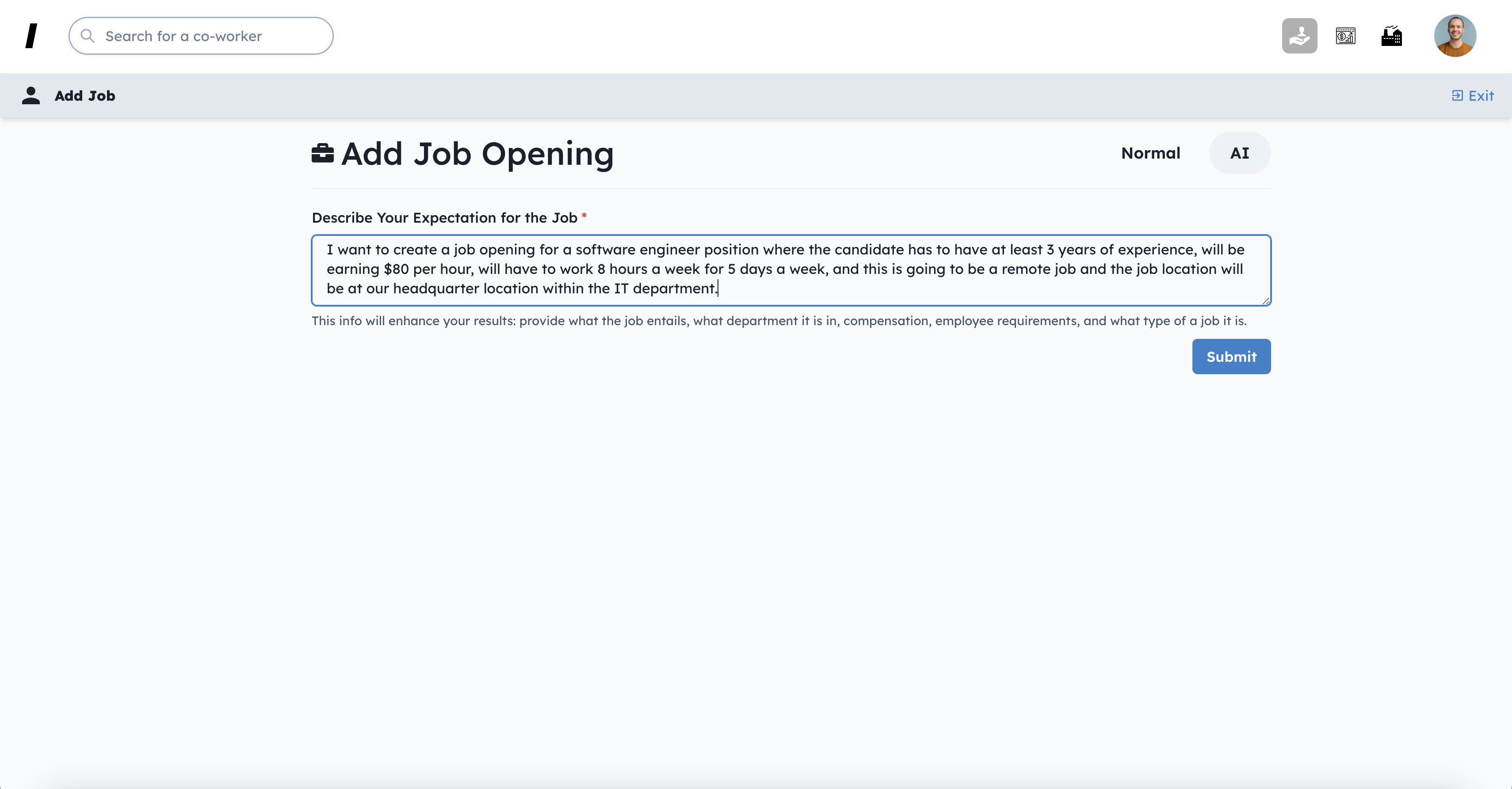 You can use AI to faster created job openings for future candidates. It now only takes seconds to create job openings.