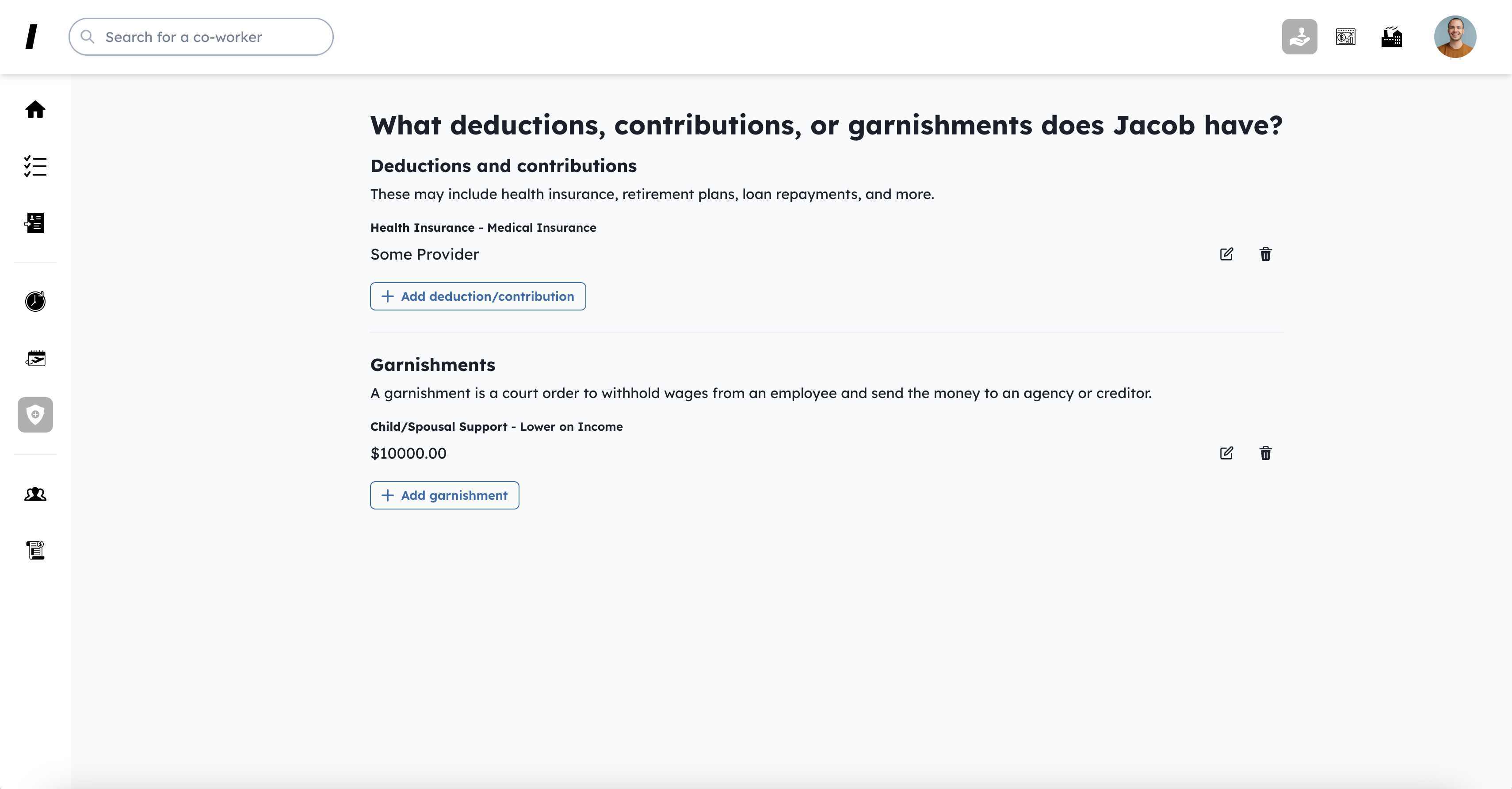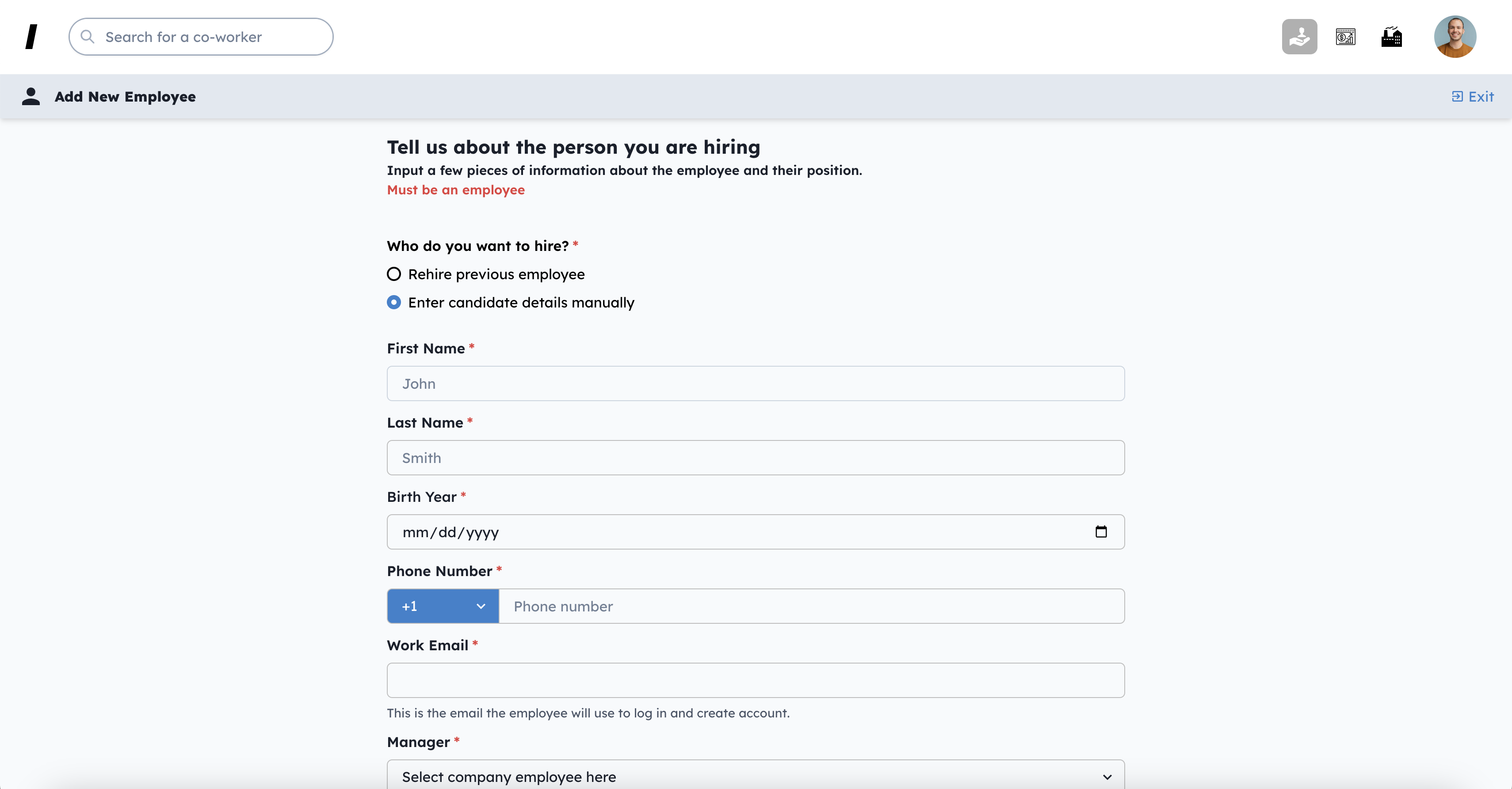 Easily onboard or offboard any employees. Fill out your onboarding information quickly and the employee will fill out the other additional questions (also not long).