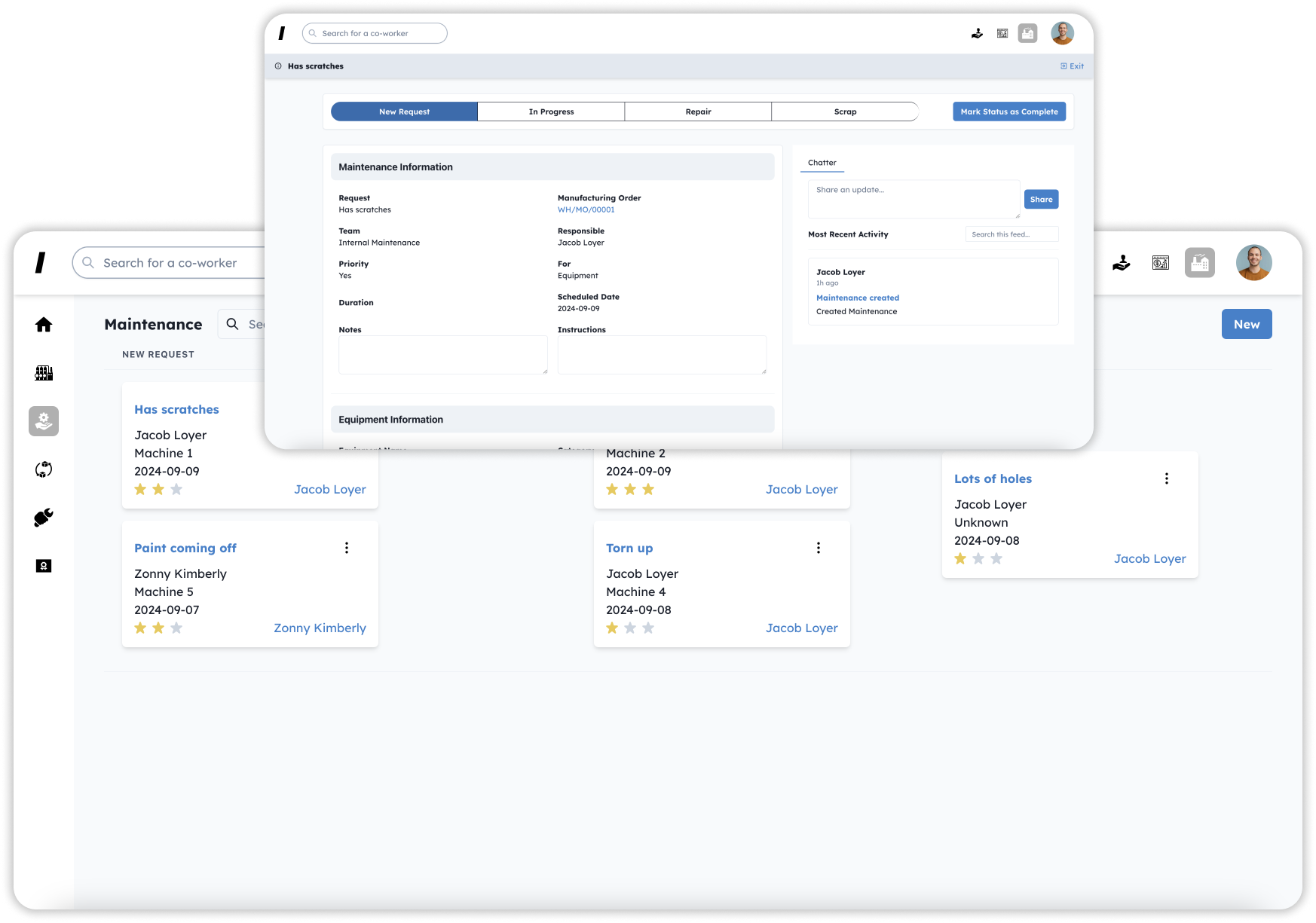 Organize maintenance information, create quick maintenance entries using AI, and easily distribute the data from New Request to Closed.